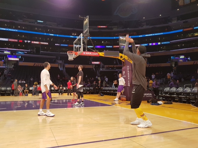 Due partite allo Staples Center, impianto bellissimo ai margini della downtown della metropoli californiana, con le statue dei grandi Lakers all’esterno, da poco anche Shaquille O’Neal che schiaccia portentoso portandosi a casa ferro e canestro.