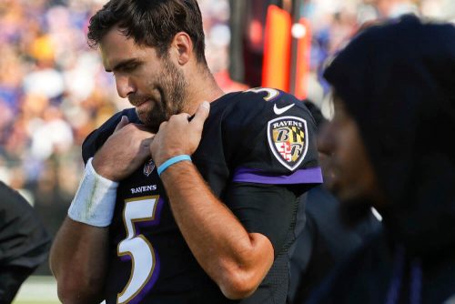 I motivi per il tracollo dell’attacco dei Ravens sono vari, certamente, ma dal momento che stiamo parlando della posizione più importante e di uno dei giocatori più pagati dell’intera lega, 4 TD a fronte di 6 intercetti per 601 yards totali -150 yards a partita, centocinquanta!- un bottino assolutamente deprimente arrivati ad un quarto di stagione: il problema principale sembra essere lo stato della linea d’attacco che martoriata com’è non lo sta proteggendo adeguatamente e sotto pressione Flacco ha il peggior passer rating della lega, un ridicolo 23.2.