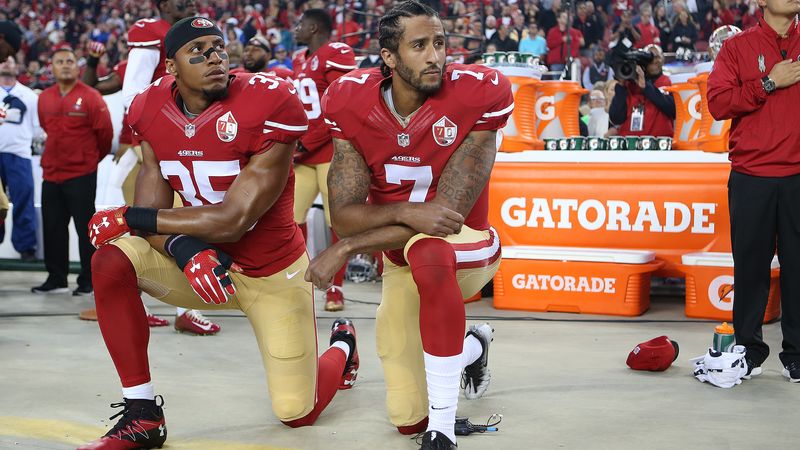 Non avrei voluto inserirlo, ma grazie alle parole di qualcuno la posizione assunta dai giocatori durante l’inno americano è diventata l’highlight più importante di tutta la domenica NFL. Yikes!