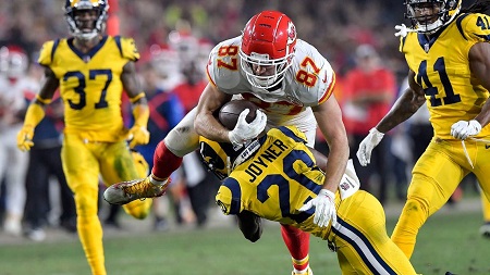 Interessante notare che sì il football sta cambiando, ma che i Rams hanno in ogni caso portato a casa questa pazza sfida con la difesa. Nel tabellino finale si leggono tanti bei numeri in grado di saziare l’appetito, ma ciò non deve impedire di analizzare le circostanze con la dovuta attenzione. 14 dei 54 punti di Los Angeles sono stati segnati dal linebacker Samson Ebukam, lesto a raccogliere un fumble provocato dall’immenso Aaron Donald ed intuitivo nell’intercettare Mahomes nelle vicinanze della endzone, con due dei tre turnover commessi dal giovane prodigio arrivati all’interno degli ultimi due minuti di gioco, segno che Patrick stava comprensibilmente tentando di forzare qualche conclusione per rimontare ma evidente indicazione pure del fatto che il reparto difensivo dei Rams è stato non meno decisivo dell’attacco nel portare a casa la decima vittoria stagionale. Le difese sono dunque bistrattate, concedono 500 yard e 50 punti in una sola partita, però basta la giocata giusta al momento opportuno ed il contributo del reparto diventa determinante: con l’appena menzionato Donald nei paraggi (due placcaggi corrisposti ad altrettanti strip sack che hanno generato punti) non c’è proprio mai da stare tranquilli, ed un Allen Bailey qualunque può intervenire in qualsiasi circostanza nell’alterare inerzia e sorte della gara.
